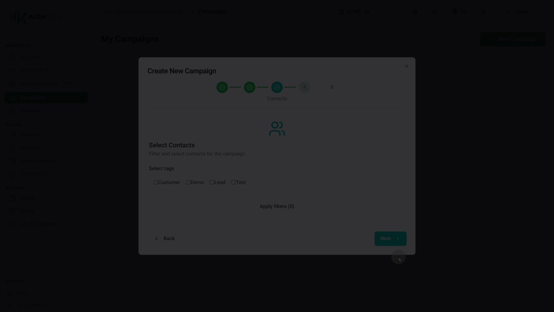 Create a new campaign to start configuring your outbound workflow.